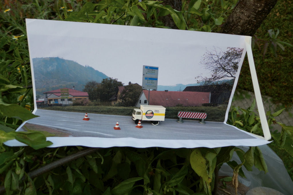 Vielleicht liegt hierin der Grund, warum Furuya in dieser neuen Arbeit einen konzeptio- nell-nüchternen Zugang hinter sich lässt und kaleidoskopartig arbeitet. Seine Bilder zeigen zum einen Aufnahmen des österreichisch-slowenischen Grenzpostens Spielfeld und des dort 2015 errichteten Grenzzauns – eines Zauns, der nicht einmal während des Kalten Krieges für notwendig erachtet wurde, um das Land Österreich vom damaligen Jugoslawien abzuschotten, und der somit ein für diesen Landstrich neues Phänomen darstellt. Zum anderen zeigt Furuya Bürgerkriegsflüchtlinge auf der österreichischen Seite der Grenze – Menschen also, denen es noch gelungen ist, über die Balkanroute und den Grenzort Spielfeld nach Österreich einzureisen (ein Grenzübertritt, der aufgrund der neuen Kontrollinstanzen mittlerweile kaum mehr genutzt wird). Ergänzt werden diese dokumentarischen Bilder mit Fotografien von Spielzeug, das der Künstler in seinem Garten arrangiert hat, zum Beispiel einen Miniatur-Lkw, ein aufblasbares Flugzeug, Plastikfiguren in einem Boot auf und im Wasser. Was hier szenisch nachgestellt wird, erinnert an aktuelle Ereignisse und deren Medienbilder, die die persönlichen Schicksale jener gänzlich unfreien Menschen thematisieren, deren Flucht mit dem nicht hinnehm- baren Tod endete – und die Auslöser gegenwärtiger politischer Ränkespiele waren und sind. Dass Furuya hier gerade nicht mit (etwa gefundenem) dokumentarischen Material arbeitet, sondern Szenen nachstellt, verstehe ich genauso als Hinweis auf den persön- lichen Ekel des Ausländers Seiichi Furuya in Österreich wie sein Arbeiten mit eben jenen (zum Teil widerwärtigen) Schlagworten, die die abgründige politische Diskussion um und mediale Repräsentation von Geflüchteten derzeit beherrschen. Diese Schlag- worte sind den Fotografien beigestellt. Und so gerät der hier zu lesende Wikipedia- Eintrag zum Stichwort „Spielfeld“ nicht nur zum bitteren Kern der Arbeit, sondern wird auch zum beißender Kommentar zu den fragwürdigen politischen Entscheidungs- findungsprozessen und populistischen Legitimierungsstrategien in Hinblick auf die sogenannte Flüchtlingsfrage. Durch diese wurde nicht nur das bis dahin Undenkbare möglich, erneut einen Grenzzaun zu errichten, um so den Zuzug (einer lächerlichen Zahl) von Menschen aus Kriegs- und Krisengebieten weitgehend zu unterbinden, sondern auch das europäische Einigungsprojekt grundlegend gefährdet.
