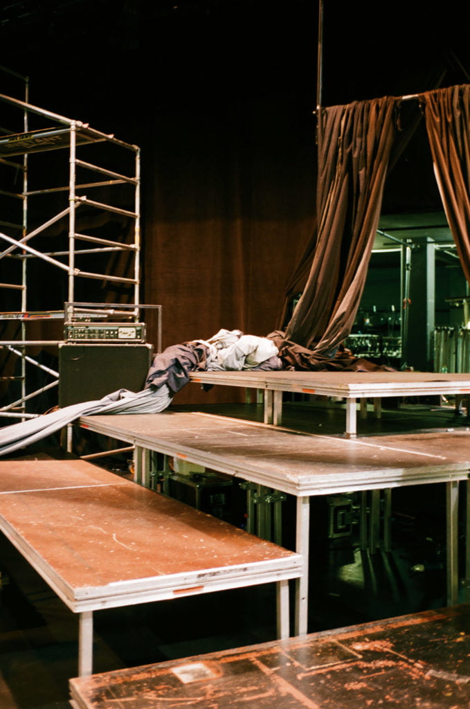 In my work I document the spaces between the dream and the public sphere, the stage setup, the rehearsals and the (self-)organisation that otherwise remain hidden from the festival-goers’ view. As actors and performers stroll from one stage to the next, the festival apparatus remains consistent.