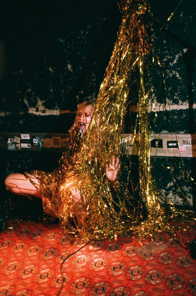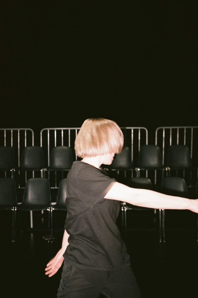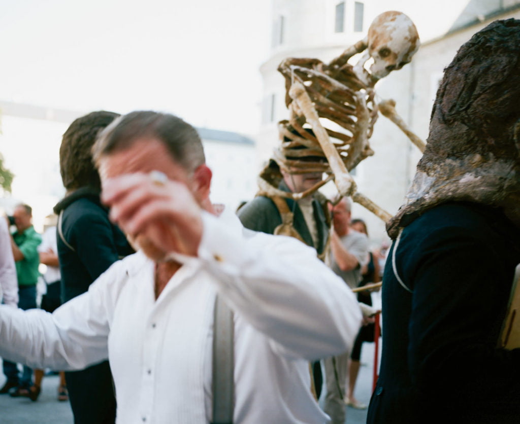 Wildberger gave careful consideration to the venues she selected. Her photographs were taken during 2016 at the production sites of Austrian festivals, referencing a broad spectrum of artistic projects: for instance the dance theatre production entitled State by Norwegian choreographer Ingri Fiksdal or events staged as part of the club panamur at the steirischer herbst festival; Jedermann (Everyman) at the Salzburg Festival; On Earth by The Loose Collective; and The Father Care Piece Piece, a co-production by the Freischwimmer Festival in Vienna. While Jedermann has been a paragon of ritualised festival performances firmly anchored within the bourgeois cultural life since the 1920s, the steirischer herbst (since 1968) and Elevate (since 2005) festivals definitely place contemporary artistic production in the discursive context of current socio-political, philosophical and ecological issues.