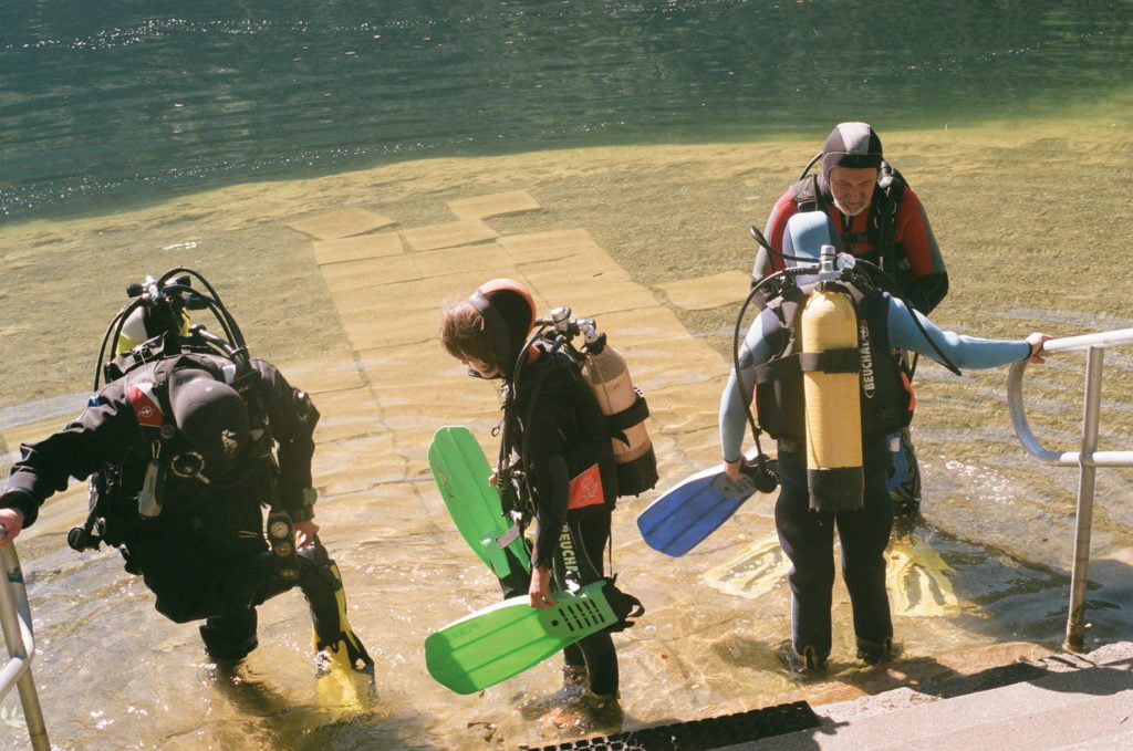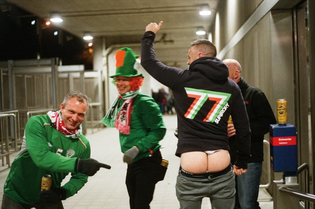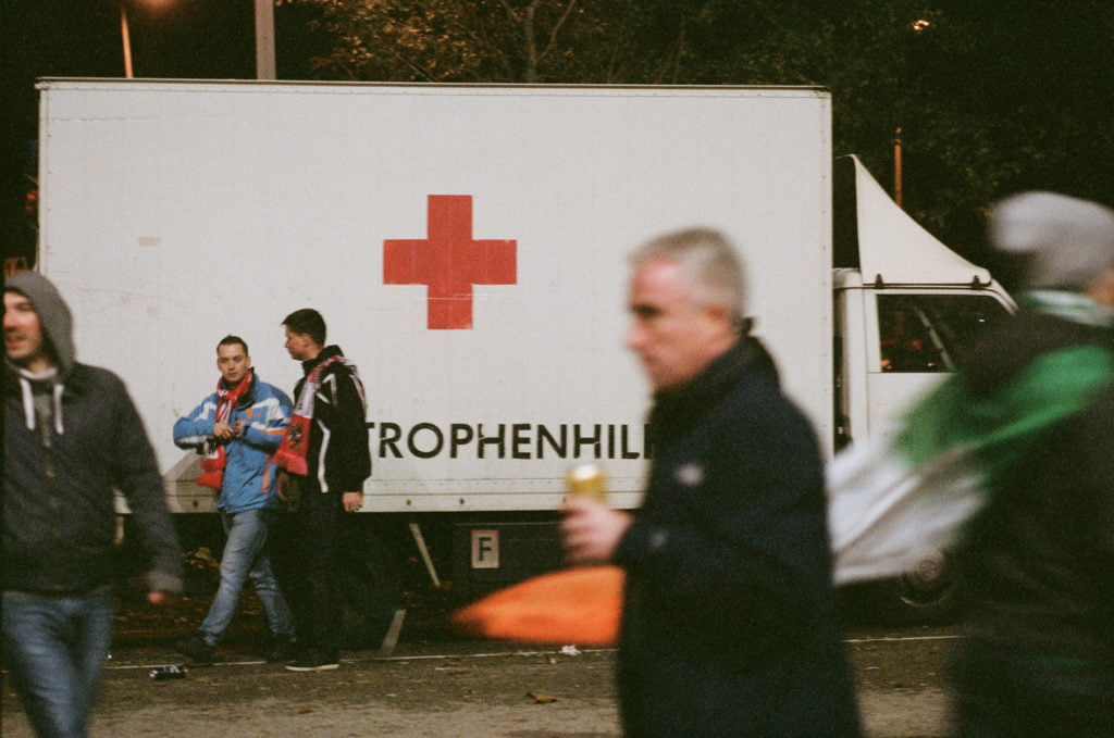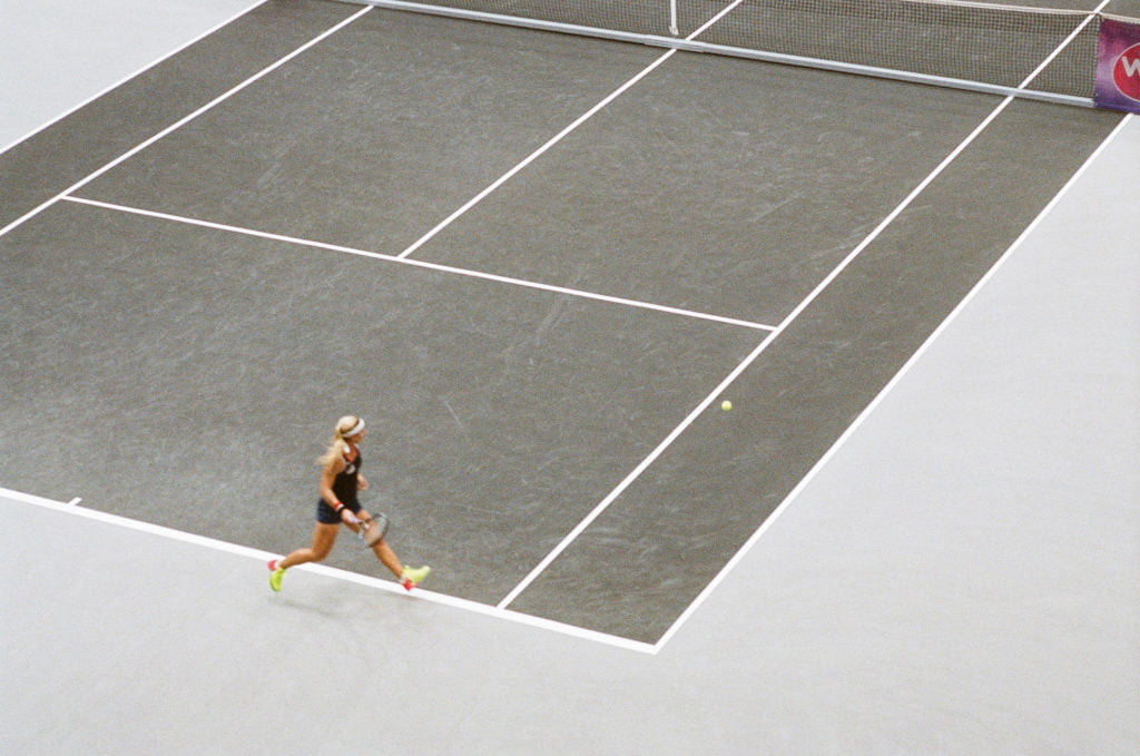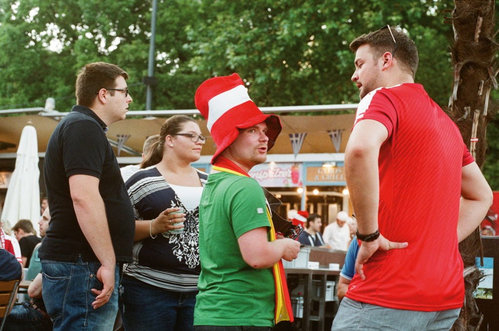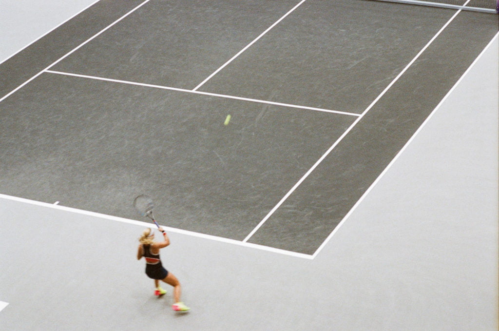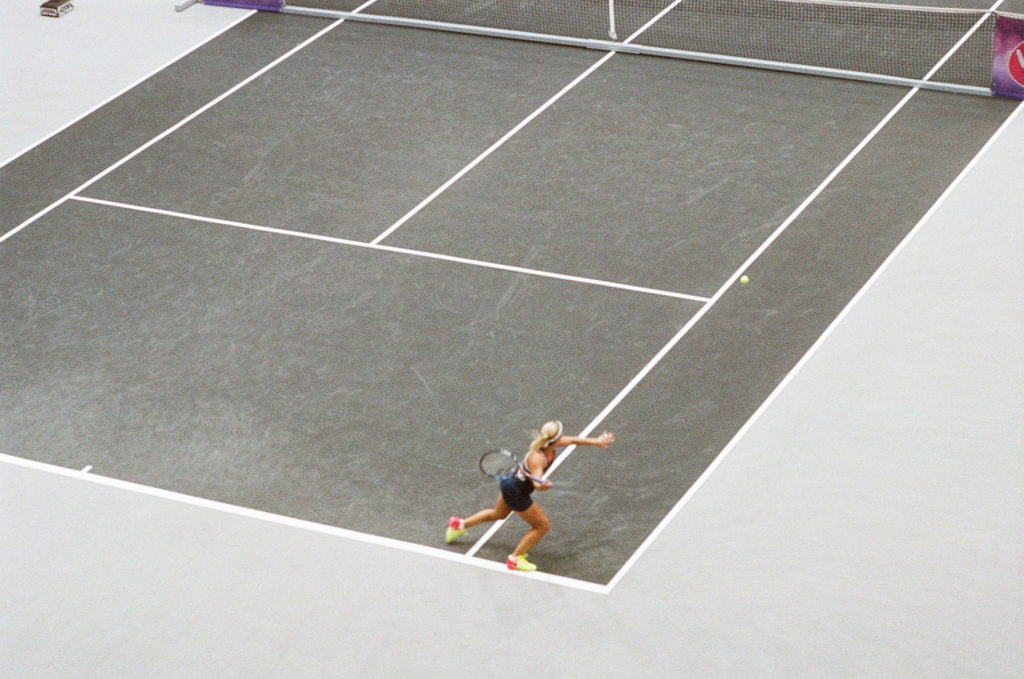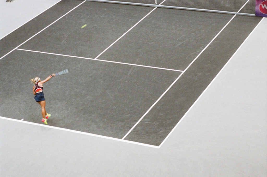 Austrians love their sports, but they are not alone in that. In Austria as in any other country, certain sports are seen as shaping the country’s sense of its own identity, and those sports are celebrated with a special affection. Austria is traditionally associated with winter sports, especially alpine sports. But with the exception of a few mainstream sports, Heidi Harsieber’s take on sport in Austria focuses mainly on sports that receive less media attention; indeed, as a general rule, she is not particularly interested in things that have been seen a thousand times before. Her photographs of events, training sessions and recreational sports are testimony to unconventional perspectives on popular sporting disciplines such as football, ice hockey and tennis, but also so-called niche sports such as archery. Harsieber embraces them all with the same fascination as she does major fixtures at the Ernst Happel football stadium in Vienna. The photographer’s curiosity about the sensuality of the bodies in motion and the emotional, intersubjective moods of the spectators is apparent in her consistently atypical perspectives, the calm and the concentration with which she captures these dynamic situations on film in a process that is exclusively analogue. In sport, Harsieber is not looking just for sporting feats and virtuosity, as is commonly the case; rather, she is interested first and foremost in the passion of the protagonists, the unexpected and unpredictable, the side effects, but also the moments of failure. Thus an ice hockey game might feature the painful moment when a player has to leave the stage following an injury. The focal point of another photograph is not trained on the divers floating majestically through the water, but on their somewhat clumsy exit from the water onto the shore. In Harsieber’s photographs, tennis becomes a choreography played out between grids and boxes. While the spectators remain quietly and fixedly seated within the confines of their stands, the ball boys kneel before the players as they give it their all. Archery is suddenly recognisable as a game of strategy, just as kayakers and canoeists become conquerors of the country’s native waters. At Vienna’s Krieau horseracing track the ballet of building cranes competes head to head with the lissom horses. Elsewhere social contrasts collide in the juxtaposition of golf and volleyball. While the golfers basking in the exclusive seclusion of Austria’s oldest golf course at the Semmering do not wish to be disturbed by the photographer, in a public space in Vienna she is able to get close to the volleyball game being played out by Nepalese women, watched by their husbands. The photographer’s interest in, and keen sensitivity for, the psychological dynamics in human gatherings are particularly in evidence in the two football double-pages. They depict the mass euphoria and deep emotional downer felt by fans after a defeat during a public viewing as well as the now ubiquitous control and security aspect at major fixtures. The photographer also pays tribute to disabled sport, which all too often is showcased only during Paralympics events. Even in the age of media voyeurism she restores a touch of normality to it, with one of the photos giving no indication whatsoever that the female athlete is in fact physically impaired.