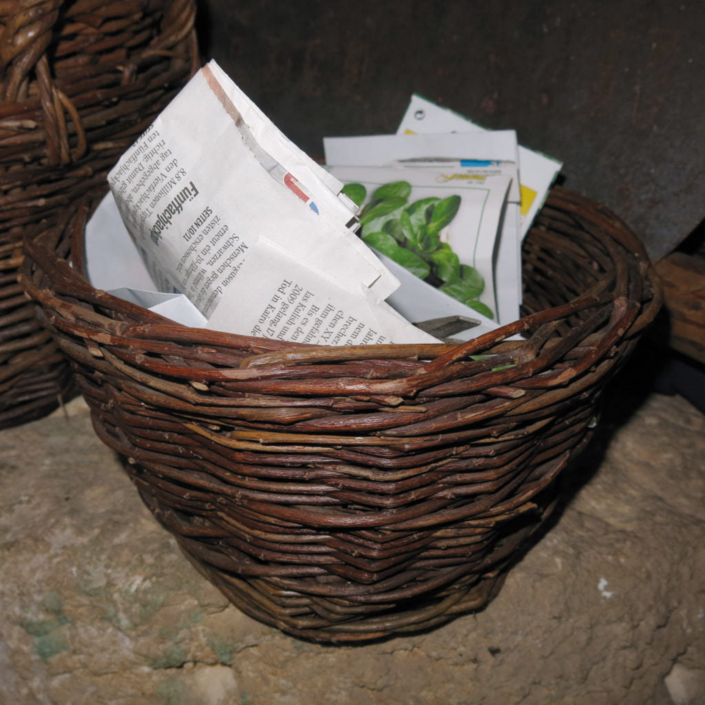 My grandfather on my father’s side was born in Hodschag/Odžaci, a German-speaking enclave in present-day Serbia, in 1887. In summer 1944, during the Second World War, the family had to leave its home town and finally ended up in Austria. A similar fate also befell my mother’s family: they too were Volksdeutsche (ethnic Germans) from the same region. Both families had been farmers for many generations. Their lives changed after they resettled in Austria, and yet both generations that lived together in our house continued to live just as they had previously as farmers. My grandfather’s favourite occupation was basket weaving. Our house was full of baskets of all sizes used for all sorts of purposes. He even ended up teaching basket weaving at a nearby agricultural college. At secondary school I made a small plasticine head, a portrait of my grandfather. I have fond memories of watching him and his hands as they worked, and hearing the gentle tapping sound of the willow switches against the lampshade in the kitchen.