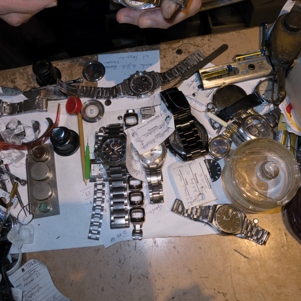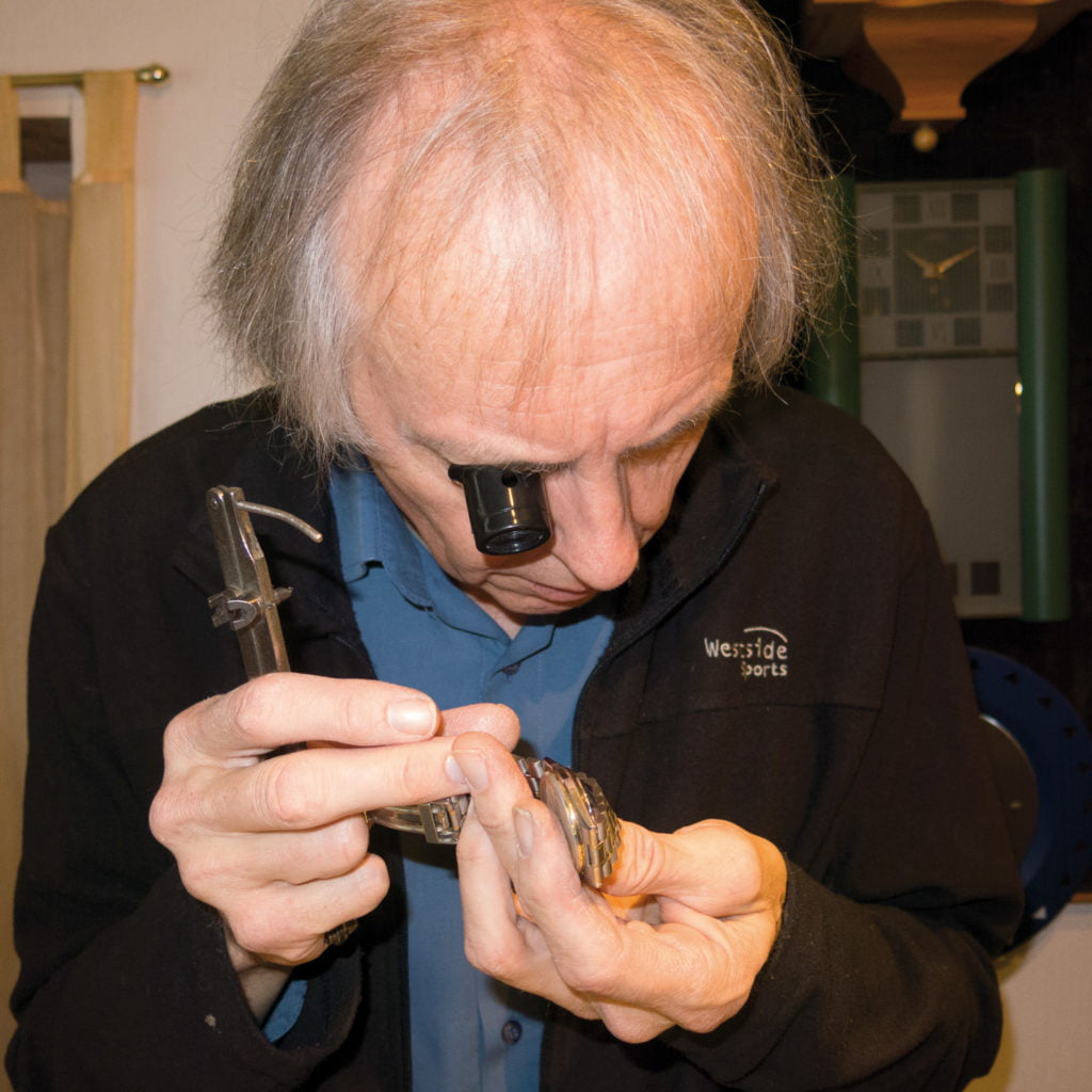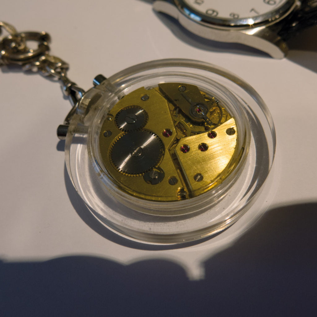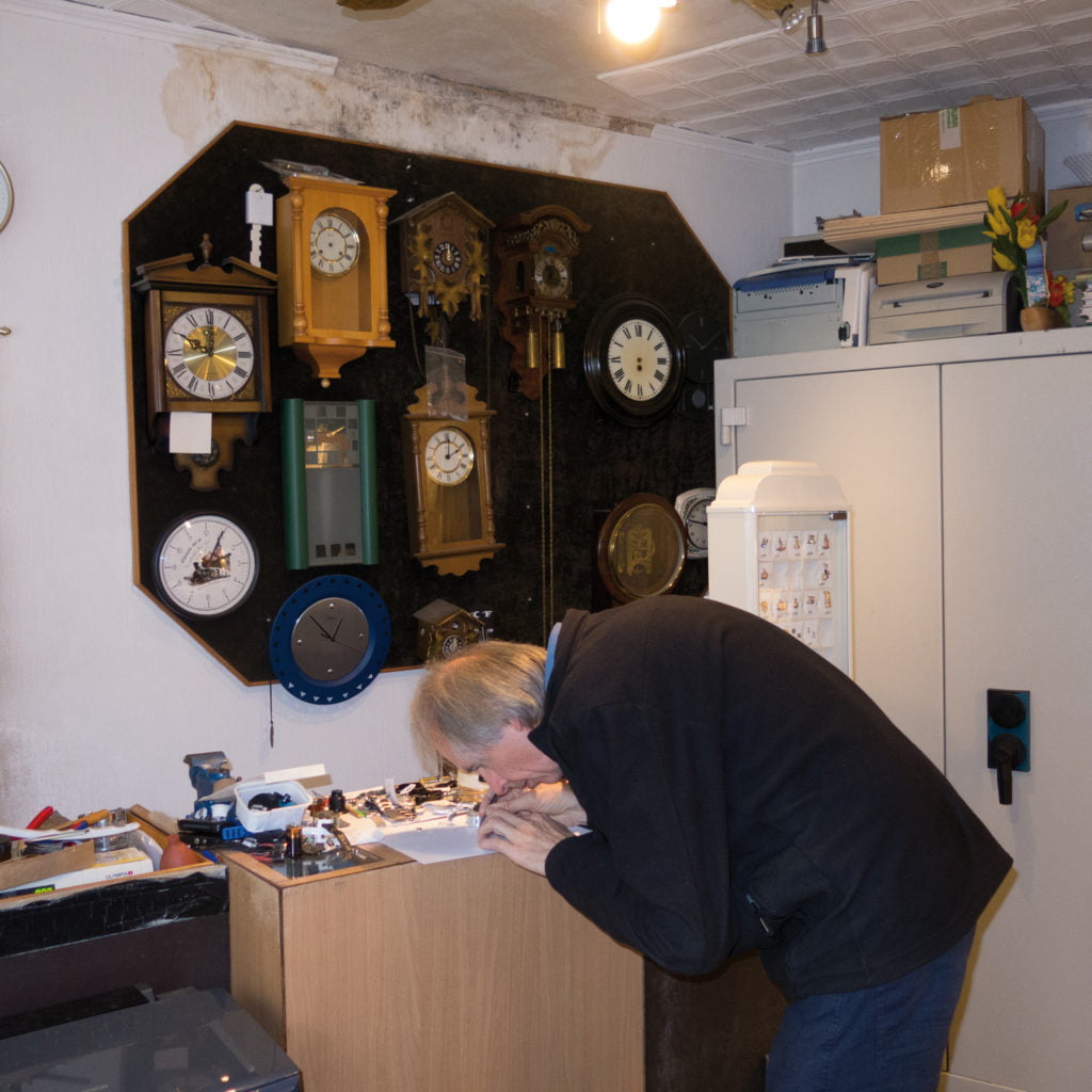 Herr Grubmüller runs his small watchmaker’s workshop, which is also his shop, in Eibiswald; he is one of three watchmakers in the town. I regularly bring him my watches whenever they need repairing for one reason or another: they might simply need a new battery or, in one particular case, because an important part needed to be replaced. The latter has had me calling in on Herr Grubmüller’s workshop at regular intervals for some time now. Indeed, my most expensive watch has been in his workshop for several years now as the part that needs replacing is no longer available. But evidently, there is still hope of it being sourced at some point. In any case I’m well acquainted with the shop, and I always get to hear the latest news: about a burglary and the exciting investigation that followed, or the time water flooded the shop. Whenever I call in to see him, Herr Grubmüller likes to show me the watch mechanism he made for his master craftsman’s diploma in the 1970s.