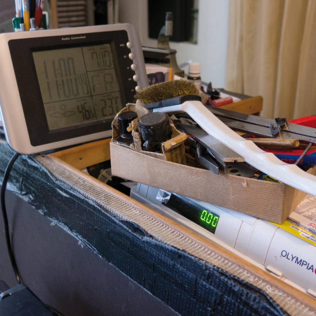Willmann’s car mechanic for instance is portrayed within the standard heteronormative context of his profession, complete with pin-up posters on the walls. But at the same time, the mechanic’s artistic aspirations are highlighted as he creates sculptures from bits of leftover metal, to be used as ashtrays. The meticulously precise work of Willmann’s tailor is documented by the countless darts and detailed seams sewn on a jacket, all of which are necessary to achieve an exact outline and fit. At the same time he also depicts the painstakingly tidy setting in which the tailor has gone about his work until very recently, a setting unchanged since 1958. The watchmaker, too, devotes himself with the utmost accuracy to the precision engineering of his timepieces.