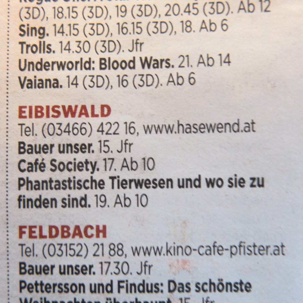 it’s here that the Hasewend family runs a restaurant called Hasewend’s Kirchenwirt, a butcher’s shop with adjoining delicatessen, and a cinema. We’ve often been invited to the restaurant for receptions after a funeral, and on such occasions the beautiful function rooms on the upper floor are just about spacious enough. In the butcher’s shop Herr Hasewend sells everything he is able to prepare as a master butcher, sourced from local farms: from fish and cheese to wine and medicinal and aromatic herbs. And then there’s the cinema. It has been running without interruption since 1913 in a room adjoining the restaurant; in the 1990s it was renovated and upgraded with state-of- the-art technology. The repertory programme screened by the Hasewend Family is comparable to that of the art-house cinemas you find in larger towns and cities. The topic of sustainable and sensible food production is often the focal point of discussion. The fact that these films enjoy a large and receptive audience should reassure those who believe that ‘the countryside’ has been lost once and for all as a place of critical thinking about the future we all share in common.