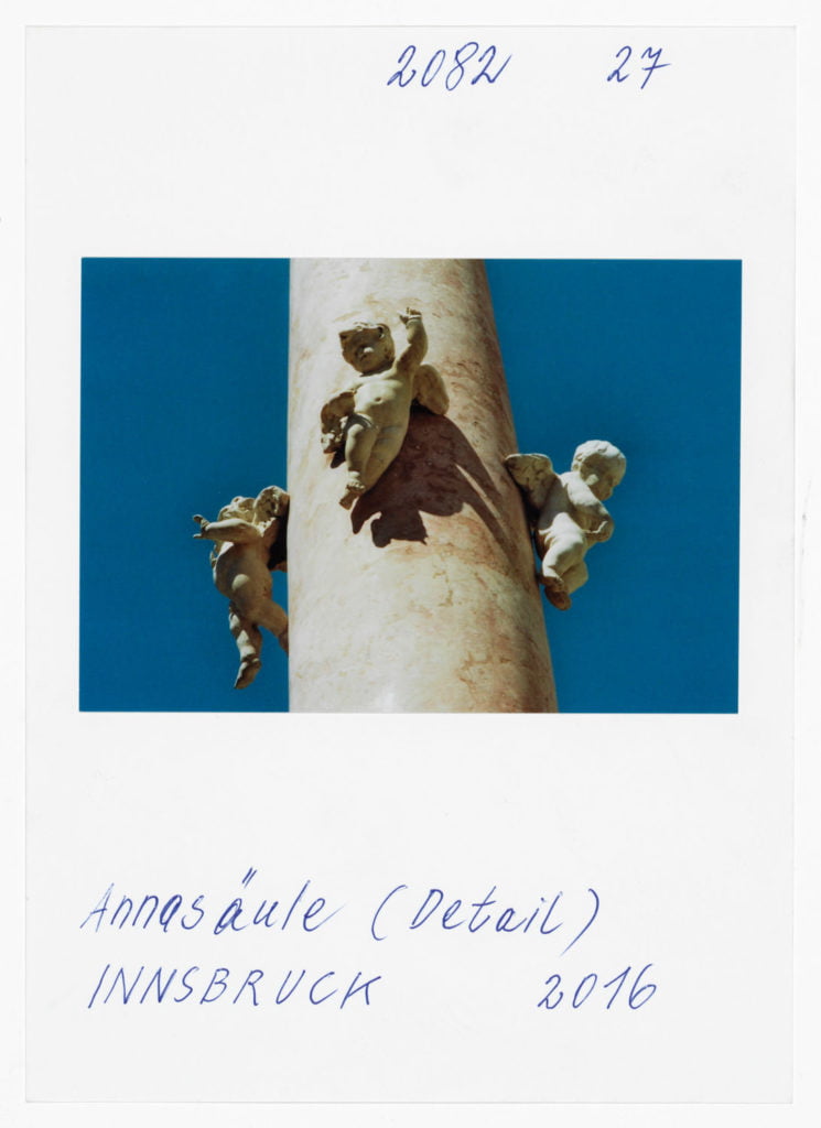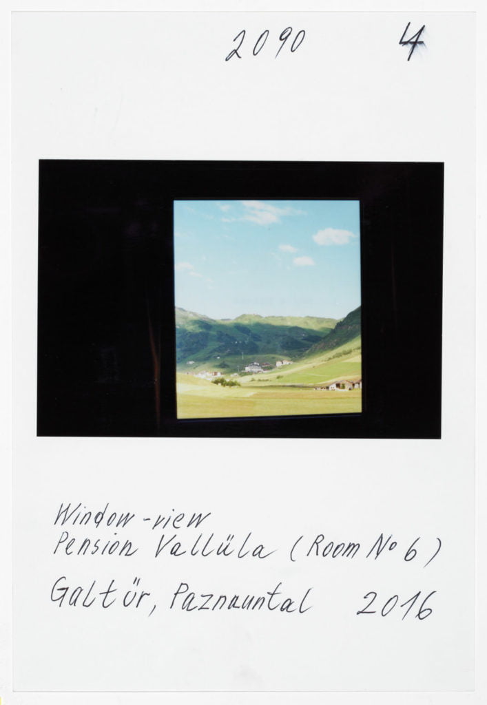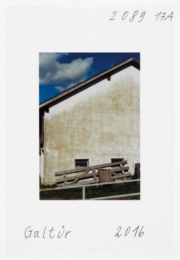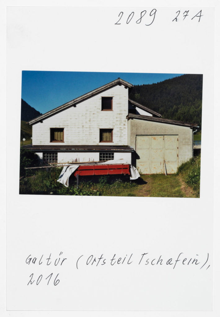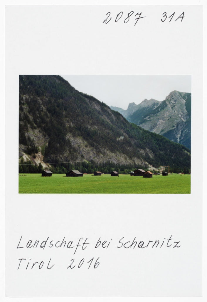 At Hotel Berghof in Seefeld, a landmark of alpine Bauhaus architecture, the traveller’s gaze appears to linger on the elegant interior before returning to the world outside, beyond the panoramic window; no look back in anger, but one filled with empathy. The Tyrolean photographs combine into an oeuvre of astounding and ever expanding diversity. As exuberant and unfathomable as it may now be, with a profusion over which Leitner seeks in vain to gain control through systematic classifications, groupings and themes, his work is nonetheless borne by a consistent artistic approach, a way of working and thinking which he himself has expressed in a number of phrases. It is certainly worth quoting and interpreting some of Leitner’s key programmatic comments here. First and foremost, a core statement by Leitner on the pace at which he works and lives his life, specifically: ‘The best pace for a photographer is walking pace.’ Indeed, Leitner is the flâneur among photographers; any haste is alien to him; he lets himself drift as he sets off in search of motifs. In Tyrol he covered 671 km in a hired car to do his on-site ‘photo rounds’, as he calls them. Leitner ‘be-strides’ his world, hours and days at a time, wherever he happens to be. His work method is based on slowness and exactness. For someone hot on the heels of the serendipitous, he takes his time. He once quoted Hartmut Böhme in an interview: ‘The flâneur does not pick the fastest route from A to B; he much prefers the odysseys of pure chance.’[ref]Hartmut Böhme, Schildkröten spazieren führen, in: Neue Zürcher Zeitung, May 19th, 2007, online: http://www.nzz.ch/articleF2LNV-1.361104. [/ref] Of course, it goes without saying that commercial constraints, commissions, purposes, and schedules are completely alien to him, just as he has no interest whatsoever in the swiftness and arbitrariness of digital photography. With his belief in the uniqueness of an image, his world has remained analogue to this day. He makes his decisions before and during the photograph; he selects his images meticulously while photographing, not afterwards. What’s crucial is the right moment, the right motif at the right time. On his field trips Leitner is always on the lookout, his timing’s right; indeed, another one of Leitner’s core statements is that ‘what comes after is not like what came before’.