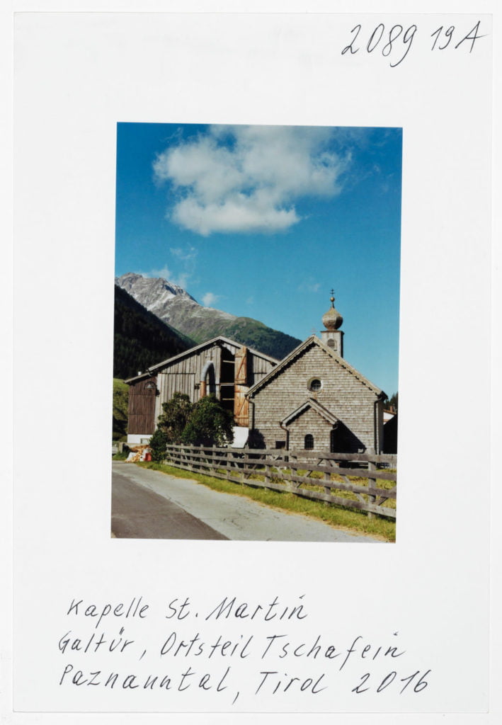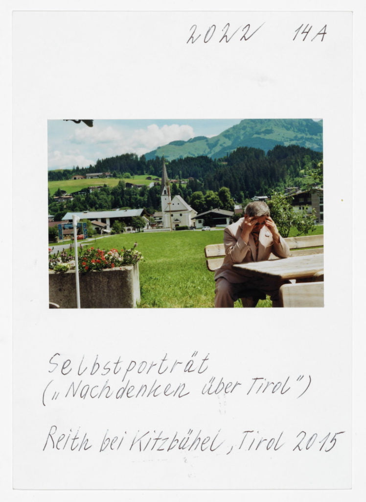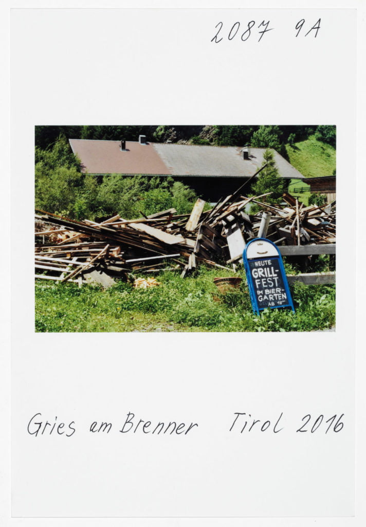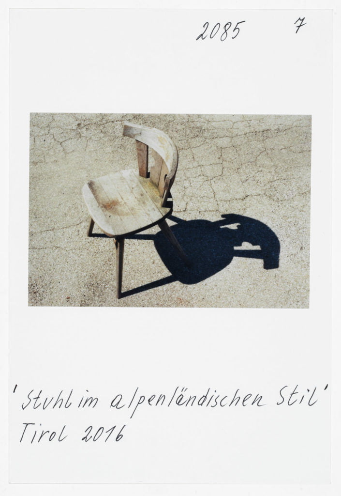 And so there is no contradiction, for me, between collages in which he accumulates found objects into a new reality, his own reality, and the images of individual objects, items of everyday life which, as in his photographs of Tyrol, transform a clunky wooden chair into an icon of the Alpine. Because ultimately Leitner’s images are formed in the mind before they become reality. And so when Leitner embarks on a photographic journey to Tyrol, it seems he is ‘driving his homeland home’ as it were.