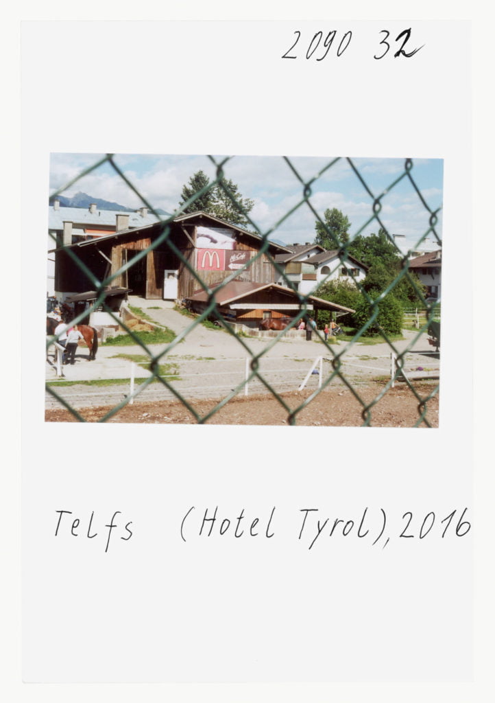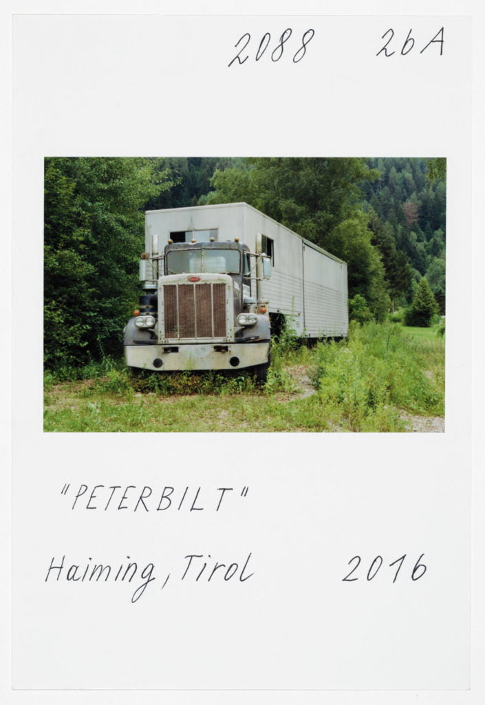 Under his gaze, what is close to us becomes strange and unfamiliar, and the familiar remote; what seems real becomes unreal, and what appears unreal is transformed into reality. He shows us ‘his Tyrolean world’ in its – as he sees it – absurd structure, fascinating images of a comprehensive Leitneresque theatrum mundi. We have the photograph of a shabby, faded boundary demarcation for the Brenner border crossing that was once mythically charged and is (now once again) politically explosive; we have the absurd landscapes of fences slicing through the countryside, sealing off the private from a now estranged world perceived as dangerous; we have Leitner’s vistas taken from hotel rooms onto a landscape that seems to outdo its own clichés; we have the rusting wrecks of American road cruisers heralding the end of the American dream – reflections one and all of his obsessive and surreal view of the world, visual sketches, fragments, imaginings from the travel journal of a possessed image-maker, armed with which he finds himself tracking down the transformations of the world and his own self. What better way to depict the irony and madness of everyday life.